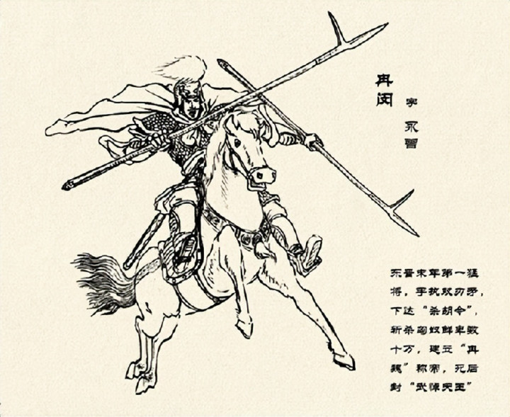 冉闵本姓冉,他爹冉瞻是乞活军出身,后来投降了后赵,被羯族皇帝石虎收为养子,改姓石。冉闵从小在羯族人堆里长大,打仗勇猛,深得石虎喜爱。